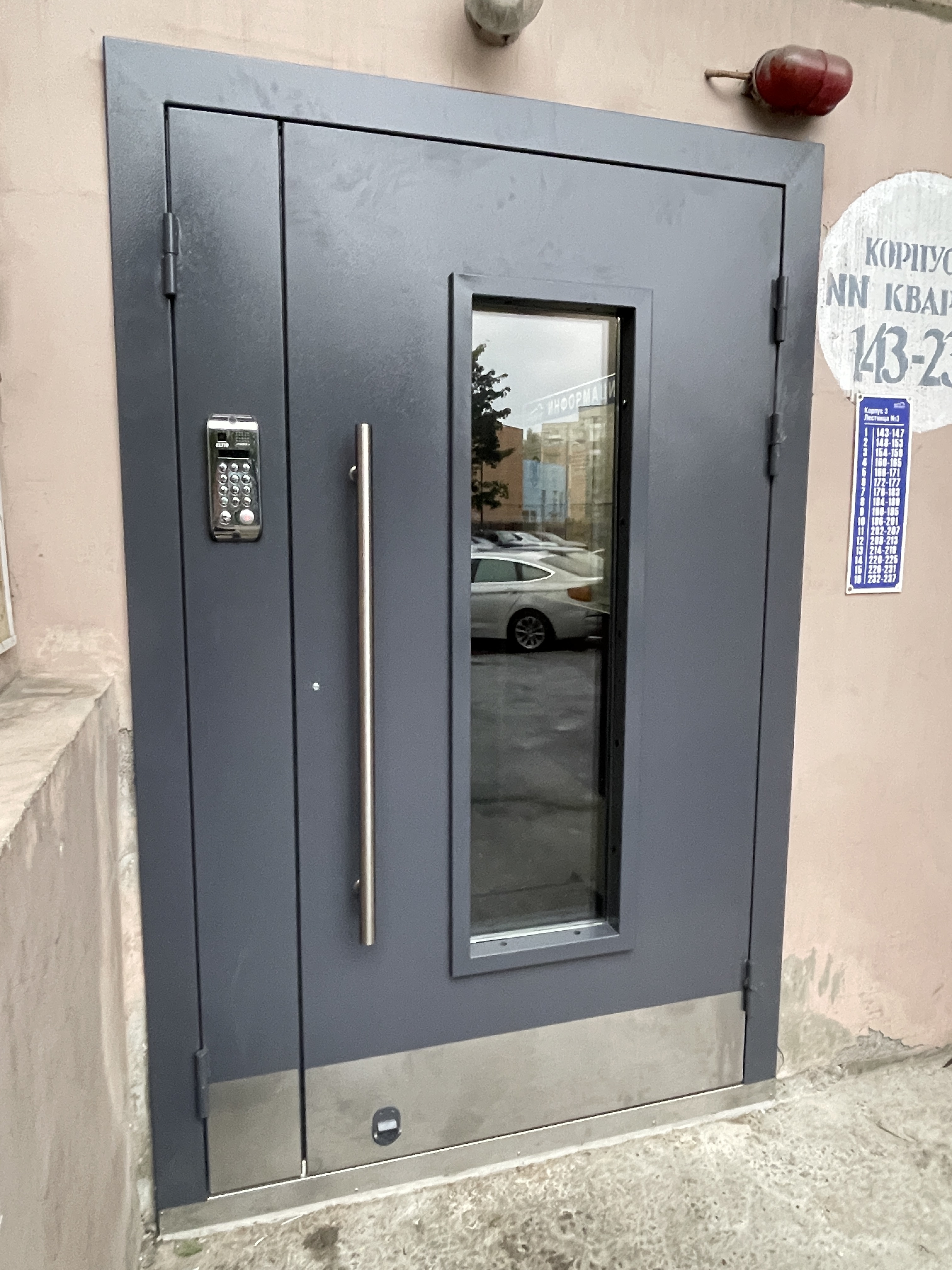 Во всех подъездах завершена установка новых входных дверей, смонтированы новые домофоны. Двери имеют более прочную конструкцию за счет расположения магнитного замка в середине двери, имеют стеклянный проем, что увеличивает освещение и обзор.