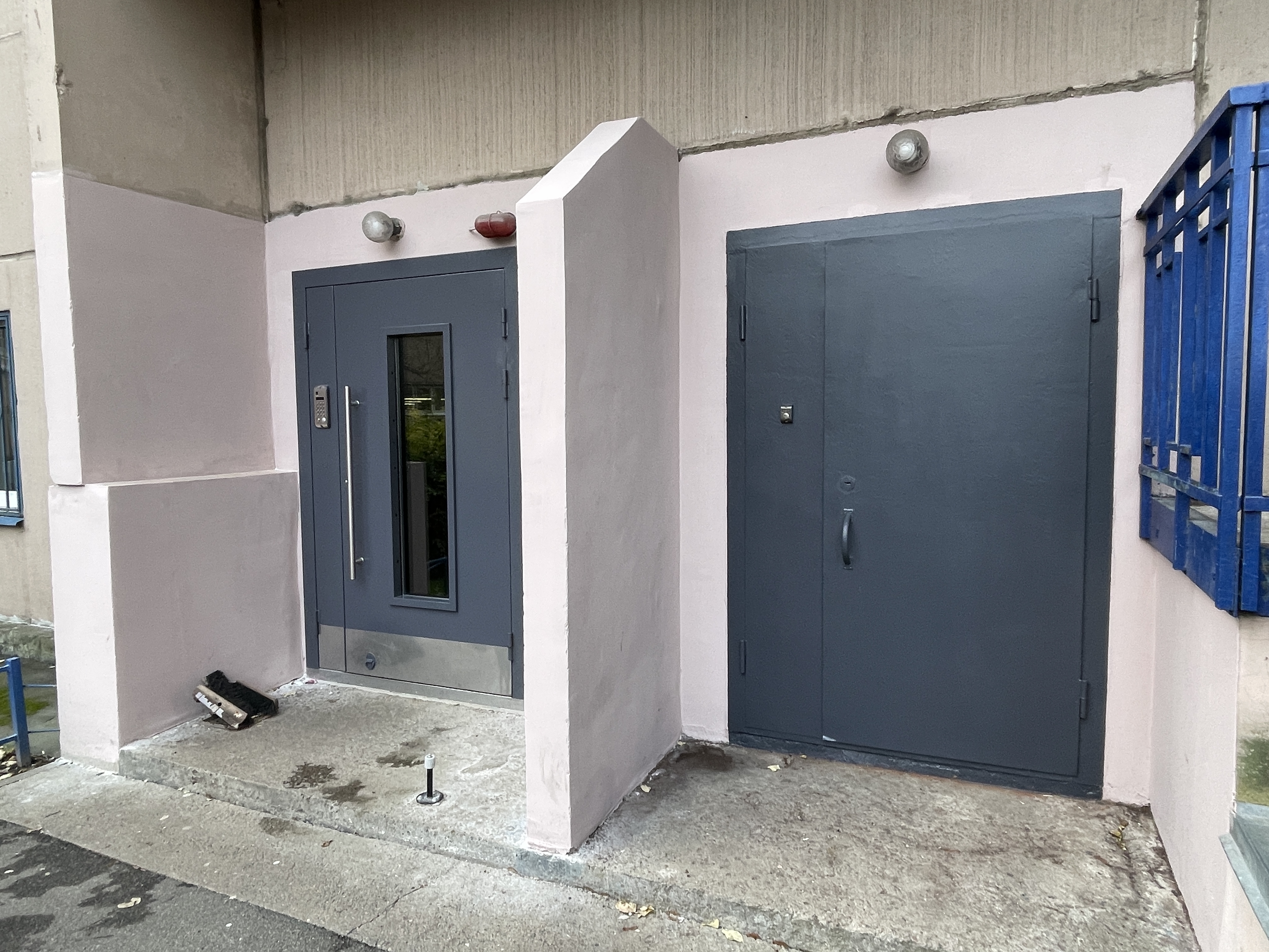 Во всех подъездах завершена установка новых входных дверей, смонтированы новые домофоны. Двери имеют более прочную конструкцию за счет расположения магнитного замка в середине двери, имеют стеклянный проем, что увеличивает освещение и обзор.